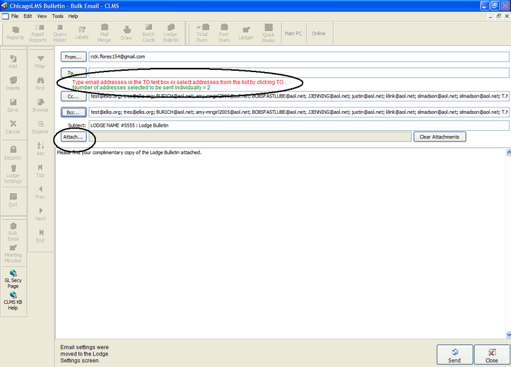You can use Bulk Email to send mass mailings to of the Lodge Bulletin, Letters and other attachments.