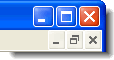 The Windows control box is a series of three buttons on the top right-hand corner of a window that are used to minimize, maximize, restore down and close the window. You will notice in the example below that there is a control box for the entire CLMS that is brightly colored; then below that there is another control box that is all gray. This second control box is used for whatever screen is currently active and maximized inside lodge secretary.