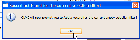 | 3. | You may get this message if this is the first "Adver" type record click the "OK" button to continue. |