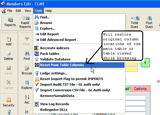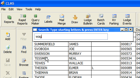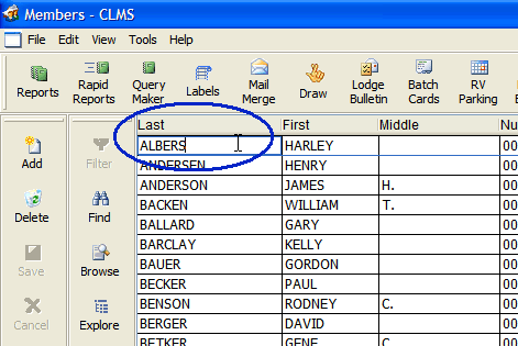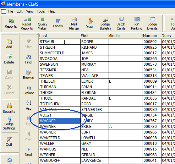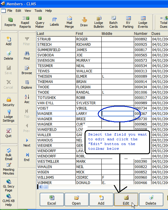 | 4. | Edit - Allows membership information that is shown in the browse list to be edited. This feature should only be used by advanced CLMS - Chicago Lodge Membership System users that know what they are doing or have been directed to do so by Chicago Lodge Membership System. |