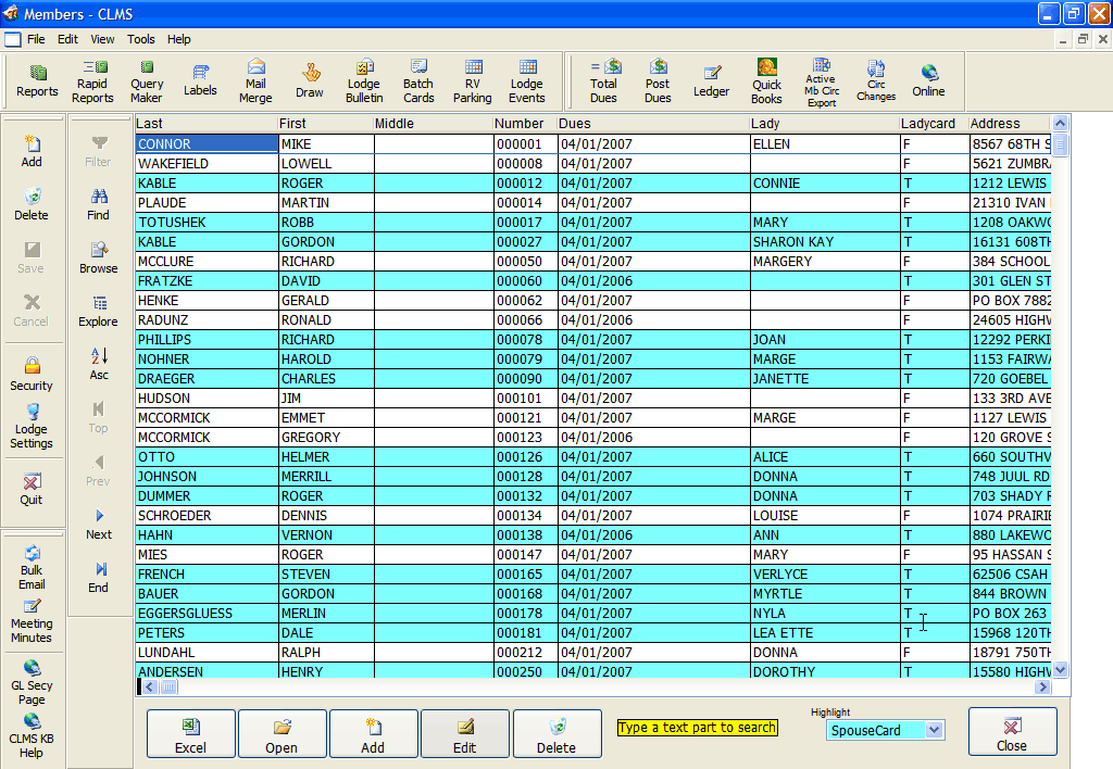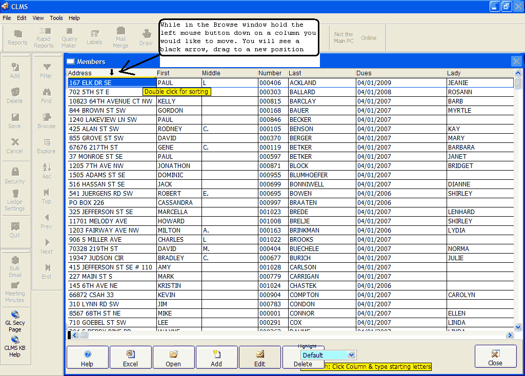 | 1. | Excel - Used to export the current browse list of members to Excel for further processing. |