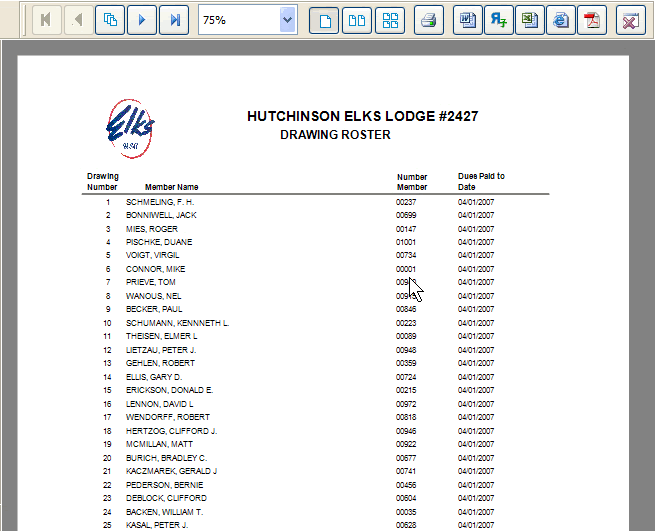 A drawing list (also known as a drawing roster) is a list of members that are assigned random drawing numbers. The drawing list will be different each time it's generated. In order to generate a drawing list for your Lodge's members follow the steps below.