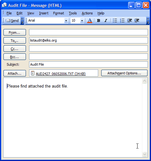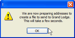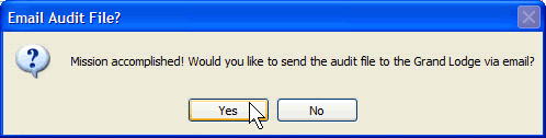 Click the "Yes" button to send the audit file to the Grand Lodge via email. If you do not have internet access available you can click the No button and instead send your generated audit file to the Grand Lodge on CD or diskette.