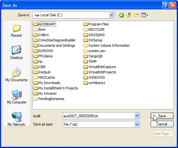 Select a location on your hard drive to save the magazine audit text file to.