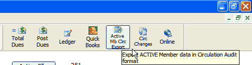Click the "Active Mb Circ Export" button which is on the system's Report toolbar (see image below).