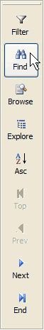 Click on the "Find" button in the system's Navigation toolbar or you can click on the "Find" menu option located in the system's "Tools" menu. Either method works exactly the same. This will bring up the Find screen as shown in the images below.