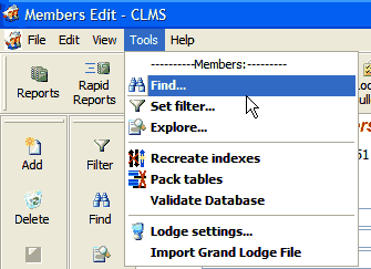 Quickly locating members based on any data that has been entered into the system is quick and easy using the Find function the system provides. Here are the steps that you must take to use this feature.