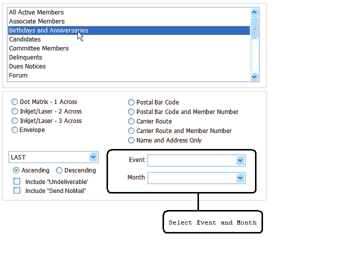 For Birthdays and Anniversaries the Event and the Month for this event must be selected.
