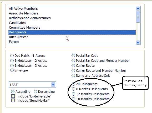 Click the option for the delinquency period you want to print labels for.