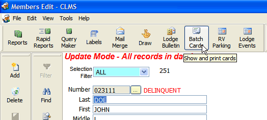Print Member and ID Cards from the Members Edit window for current member