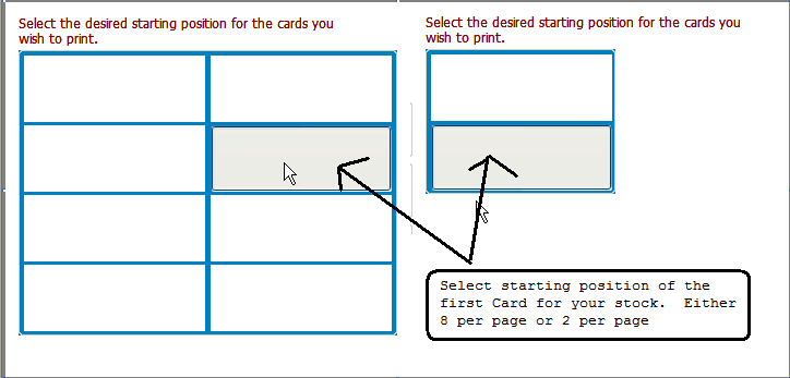 Now you can select where the first card will print. The first card to print will start at that position helping to reduce wasted stock.