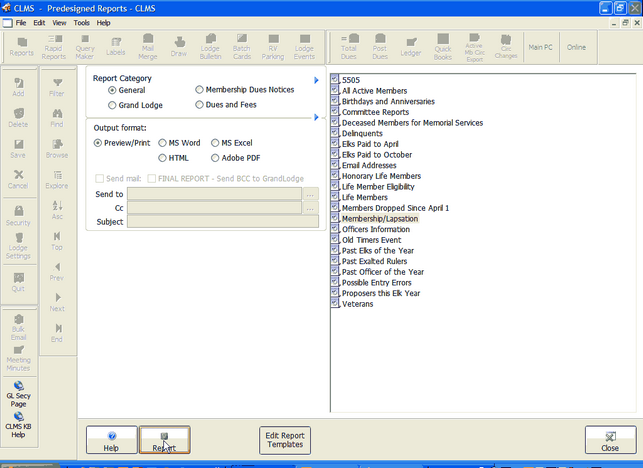 The membership Lapsation Report is one of the reports that come standard in CLMS.