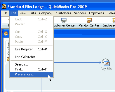 Now that you have verified that the Chart of Accounts are set correctly in both Applications, On the "Edit" menu select "Preferences".