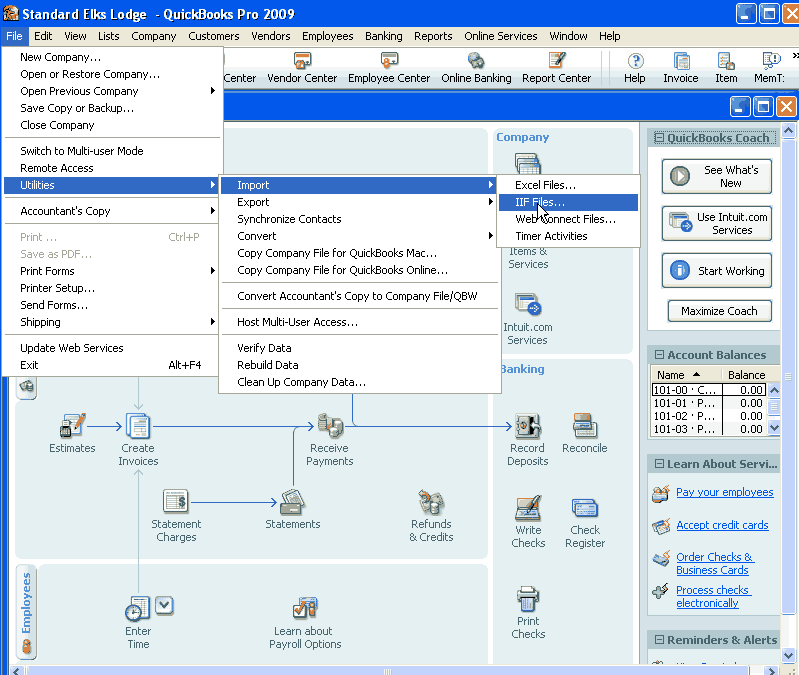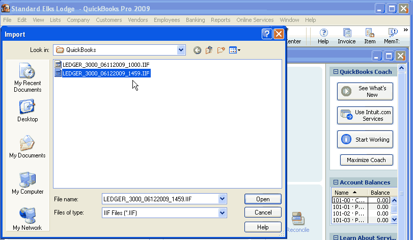 Importing IIF file into QuickBooks.