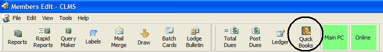 CLMS allows you to share data with QuickBooks, by transferring files from CLMS into a IIF file type that can read by QuickBooks. Accounts must match in both the QuickBooks application as well as the CLMS Grand Lodge Chart of Accounts see Grand Lodge Chart of Accounts.