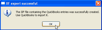 You should see the "IIF export successful" message box. Click the "OK" button to continue