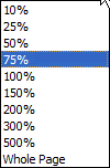 | 1. | Zoom drop down providing a number of zoom levels for display: This allows you to make the page images larger or smaller depending on how much detail you need to see in the preview. The zoom levels available are shown in the screen shot below. |