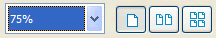 Consists of a drop-down box and 3 different display settings to show reports or labels in 1-up, 2-up or 4-up fashion. The controls from left to right are as follows: