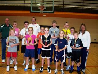 WINNERSFirst row: Maxwell Voet, Audri Tucker, Caiya DeWitt, Maggie Wehrmeyer and Blake Pedersen. Second row: Zoe Voet, Leia Sharar, Tyler Bosma, Mark Glover, Logan Housenga and Drew Pedersen.At far left, Craig Gould, Michigan Elks Association State Hoop Shoot Chairman, at center back, Ron Elenbaas, Holland Elks Hoop Shoot Chairman, and at far right, his beautiful wife Cheryl. This year's event drew in around 20 or more participants than last year and more were in the younger age groups.For more information on "Hoop Shoot", go to "Links".