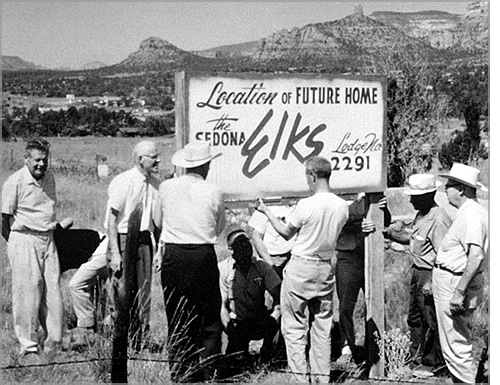 Early in 1963 a committee of Elks in Sedona was formed to institute a new lodge here. The committee was composed mostly of members of Jerome Lodge No. 1361. Gene Munson was made Chairman of the organizing Committee. Other members included Doug Garbutt (who became the first Exalted Ruler), William L. Brown, Milt Dunn, Cy Weber, Tom Mason, Lyle Commings, Wesley Jackson, Dan Kingman, and Harold Feightner.