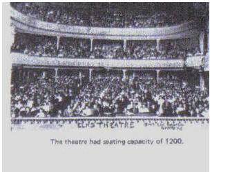 BUILT IN 1904 FOR $65.000 IT WAS ONE OF THE FINEST THEATREIN THE STATE. IT HAD A SEATING CAPACITY OF 1,200, THE FIRST SHOWING WAS "THE WIZARD OF OZ"IN 1939 A FIRE DESTROYED THE ENTIRE STRUCTURE, IT WAS NEVER REBUILT