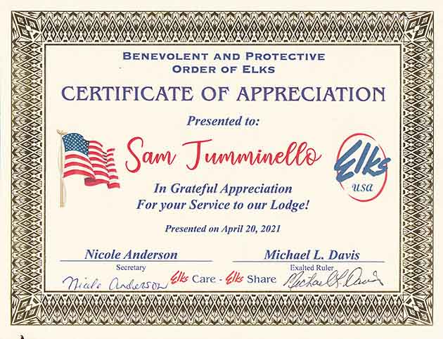 At the regular Lodge meeting held January 28, 2025, the Lodge Secretary read andExalter Ruler Patrick Mickle accepted the resignation of Sam Tumminello, III