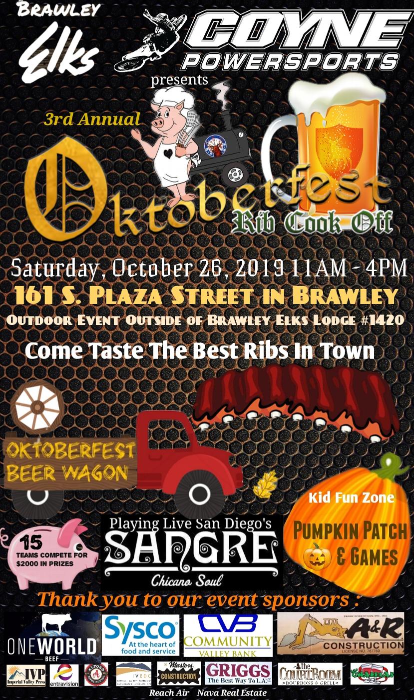 Oktoberfest Rib Cook Off on Saturday, October 26 beginning at 11:00 am. This community outdoor