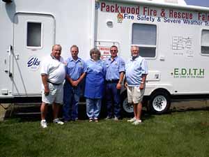 This is the Fire Safety Trailer that was on display at our Youth State Golf Tournament in Grinnell. Pictured are: Bob Streeter, Marshalltown Secretary; a local Grinnell firefighter; Pam Johnson, 2005 Grinnell ER; a local Grinnell firefighter; Craig Caslavka, President Elect, Waterloo.