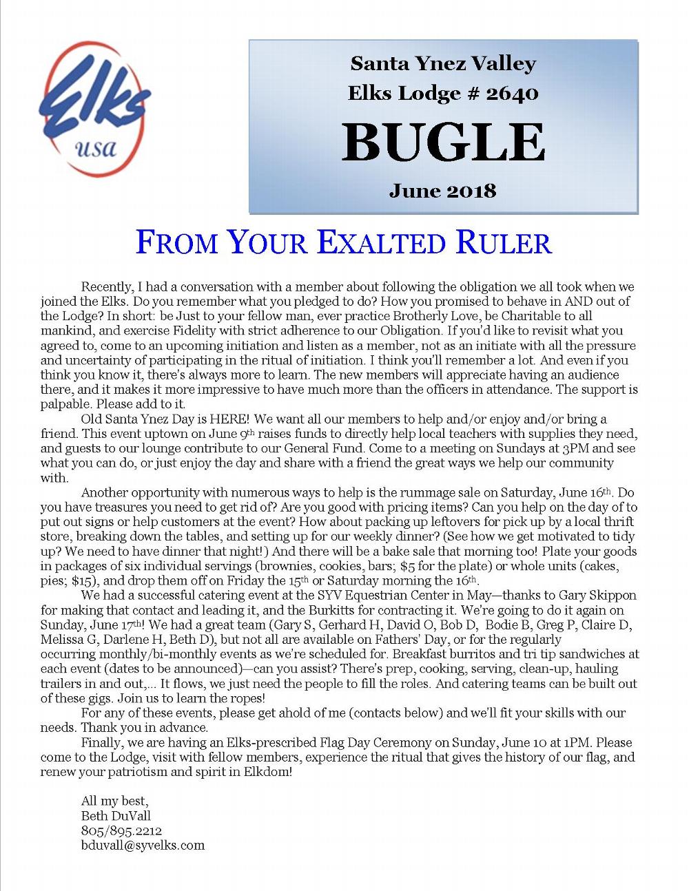 Bugle-SYV Elks Newsletter