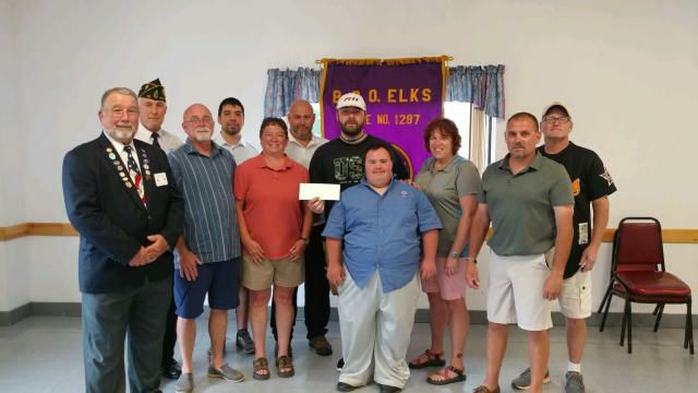 Saturday night, August 5th, 2017 saw the Old Town Elks present 3 checks from the First Annual Old Town Elks Golf Tournement and Pig Roast. $2000 each to Maine Childrens Cancer and Penobscot Area Special Olympics. $1500 to the Elks National Fund. From L to R : State of Maine Elks President David Anderson, Old Town American Commander Bill Arbuckle, Lead Knight Randy Bickford, Hidden Meadow's Rob Olson, Lecturing Knight Denise Hewes, Loyal Knight Jeff Bosse, Tourney Organizer Ryan Lucas, Special Olympian Daniel Scott, Penobscot Area Special Olympics Co-Area Manager Wendy Gilbert, OT ER Paul Roy, Tourney Organizer Jim Evans