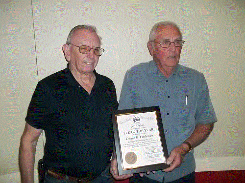 Sterling lodge 1336 Elk of the Year was presented to Duane E. Foxhoven. Presented to him by PER Howard Combs.