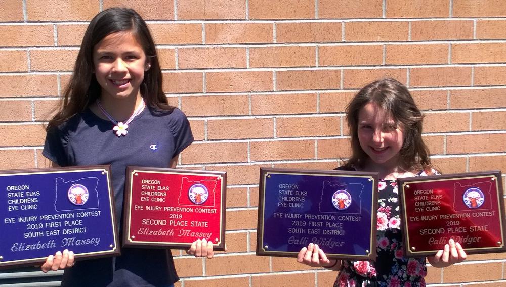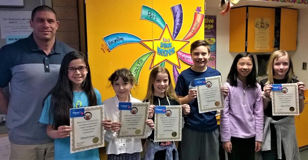 Presentation of awards to winners of the Bend Elks Eye Injury Prevention Poster contest from Buckingham School.