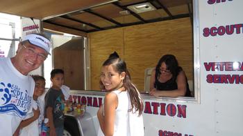 Member Larry Martinez and Trustee Dana Arredondo help register youth at the Drug Awareness Trailer at the onset of the event.