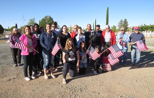The Lordsburg Elks, with the help of the Youth Volunteer Corps (YVC) and other local youth, placed American flags on the graves of local veterans at Shakespeare and Mountain View Cemeteries Friday morning. More than 400 flags were placed in honor of these American heroes in honor of Memorial Day weekend. Flags were also placed on gravesites in Animas. The flag project is an annual one for the local Elks lodge and is supported by the New Mexico Elks Associations’ Veterans Services program. The Elks are currently accepting torn and tattered flags that will be respectfully destroyed in a flag burning ceremony on June 13. Flags can be dropped off at Quality Auto, the Cottage House and the Hidalgo County Herald.