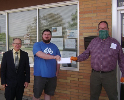 The Pierre Elks Lodge #1953 applied for a $2,500 Gratitude Grant from the National Elks Foundation in April of this year. After hearing that the lodge was awarded the grant in May, Exalted Ruler Jonathan Ward put a challenge out to the members of the lodge to raise additional funds to match the grant and Pierre Elks Lodge members donated $1,015. As a result, more than $3,500 in grant funds and lodge donations were earmarked for the Pierre-Fort Pierre Food Pantry to assist those needing additional help during the Coronavirus pandemic. During a check presentation-a $3,515 check was given to the pantry. The Elks funds allowed the organization to meet a goal of $50,000 as part of the annual Ardis Townsend Challenge to Fight Hunger! Thanks to the National Elks Foundation, to all who donated and to Lorie Pogany and Steve Wegman for their work in securing the NEF Gratitude Grant!