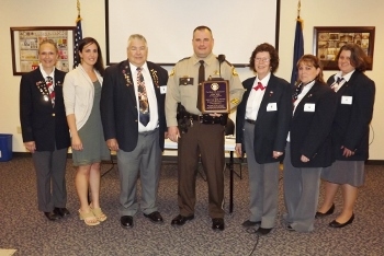 The Maine Elks Association presented the Grand Lodge of Elks Enrique “Kiki” Camarena Drug Awareness Award to Deputy Joseph A. Jackson of the Somerset County Sheriff’s Department on May 23. This award goes to the top law enforcement officer in Maine who has made a significant in the field of drug prevention. The presentation was made by immediate Past State President John Nicholson and State MEA Drug Awareness Chairman J. Andy Bolz. Deputy Jackson was recommended for the award by Sgt. Michael Knight and nominated by Jessica Herbert, the Drug Awareness Committee Chair of the Skowhegan-Madison Elks Lodge. Jackson was the first Somerset County law enforcement officer to receive the award. Members attending the ceremony, in addition to Jessica, were Lecturing Knight Cathy Voisine, Exalted Ruler Ron Voisine, Past Drug Awareness Chair Bobbi Alley, Secretary Andrea Ducharme, Tiler Melinda Beckwith and State Trustee Mike Lange.