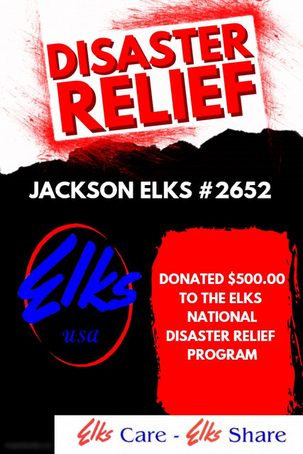 Jackson Elks Donate to the Disaster Relief Fund