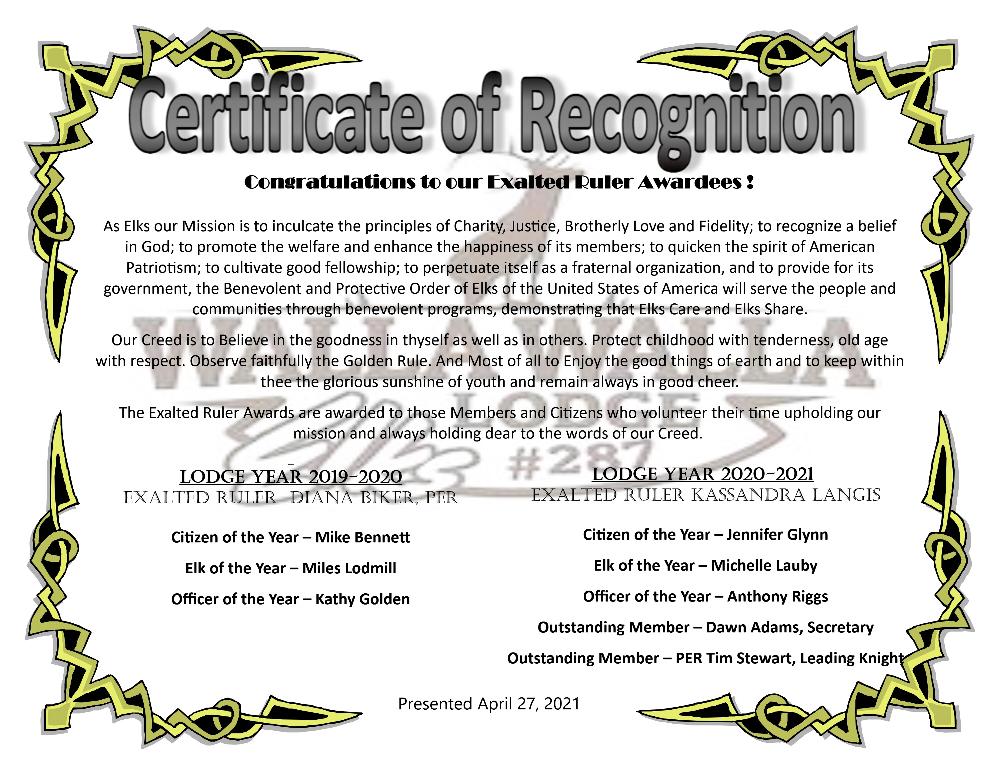 Exalted Ruler Awards!