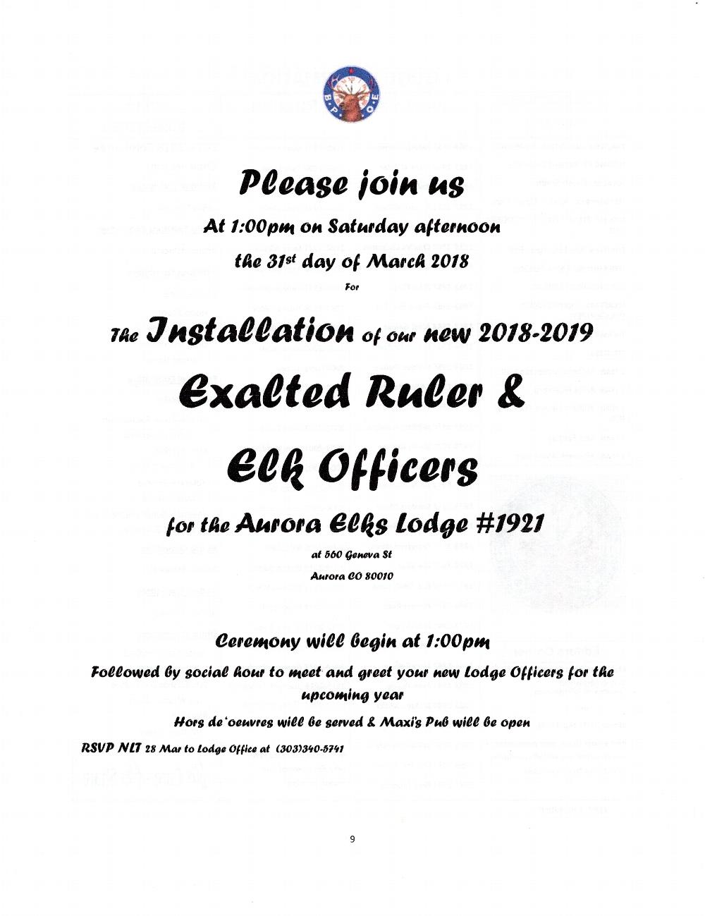 Colorado Elks Association (CEA) President Gary Salberg's visit to the Aurora Elks Lodge @1921 on October 3rd, 2017.