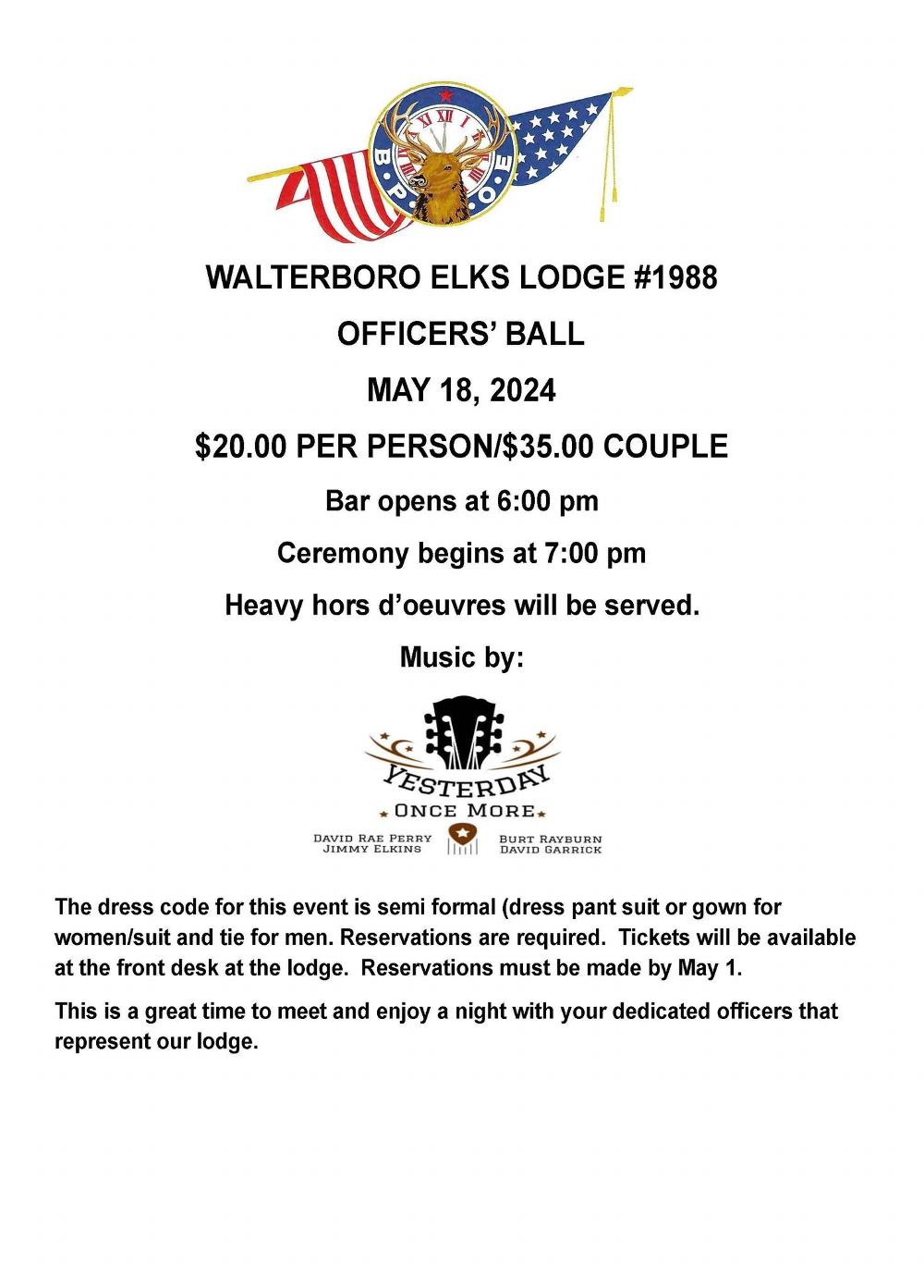I would like to thank all of the Walterboro Elks Lodge 1988 members in their participation in the Vietnam Veterans Day event. We had a great turnout of Officers, members, volunteers and Paul Pye and all of the pack porch crew that got up early to cook. May God bless our Veterans.