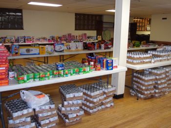 Lots of food for the Christmas baskets