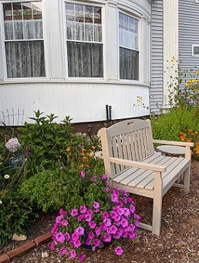 The Garden is located between the Guest Entrance to the Lodge and the Members Entrance. It has year round access with a bench to sit and relax.