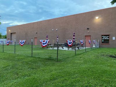 Our outdoor space is a welcoming space for our Elks Family, equipped with a playground for kids and a fenced in area for celebrations and gatherings. In the summer of 2022, our very own L'Kette's provided the funds for a new fence that was installed by our members.