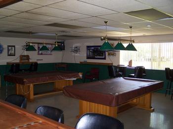 The Club lounge area consists of a "U" shaped bar tha can seat approximately 20 people. The area around the bar has tables that can seat approximately 32 additional people. To the south of the lounge area is our game room with 2 full-size pool tables and seating at bistro tables. One of the two ladies' rest rooms is located off this area. To the north of the lounge area is our dining area seating approximately 50-60 people. This area can also supplement seating for the bar lounge area.