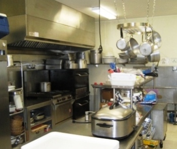 Fully equiped Kitchen for any occasion or event. From full sit down meals made on site to large line buffets, we can serve it all. Has buffet line serving window with roll shutters for convenience when food service has ended.