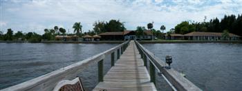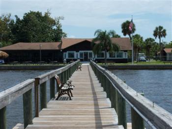 The dock is 550 ft long and was completely rebuilt in 2003 after the old dock was destroyed by a "No Name" storm in 2001. During Huricane Charley the dock remained in place but took on a pronounced "serpent" appearance and had to be re-set. The depth of the water at the end of the dock varies from less than 2 ft. at very low tide to more than 4 ft. at hightide. The depth decreases gradually as you move closer in toward the seawall. Members and guest are allowed to fish from the dock and tie up their boats for day events at the lodge.