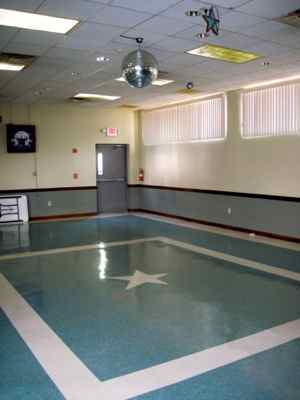 Dance area that accommodates band, DJ, and other performances.