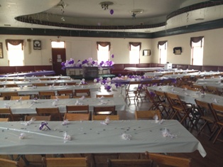 200 person Event hall on 2nd floor. Hardwood floors, raised stage, bar area, restrooms, updated electric (12 roaster capacity), and WiFi. Great for parties, meetings, shows, concerts, dances and more!