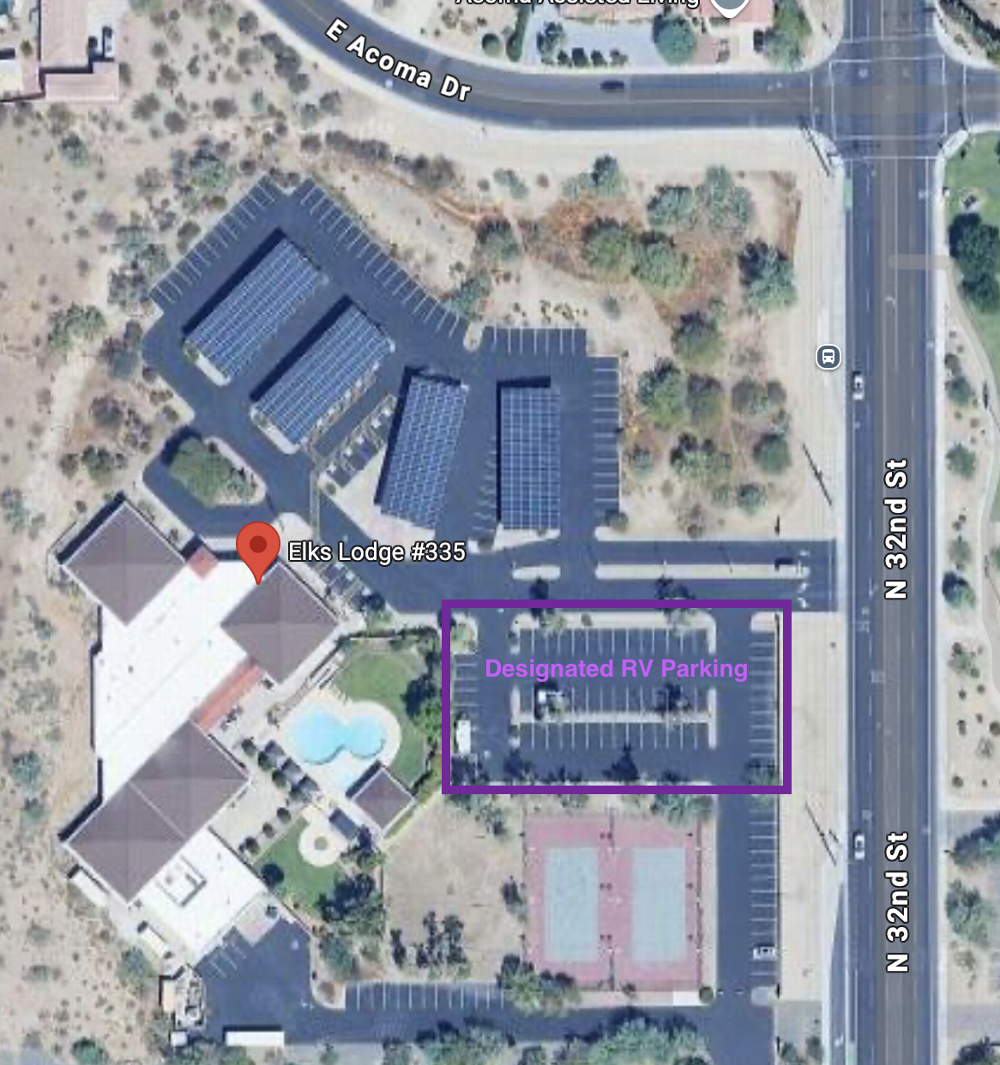 Location: Phoenix, AZ Lodge No. 335 RV Park 14424 N 32nd St Phoenix, AZ 85032-5022
