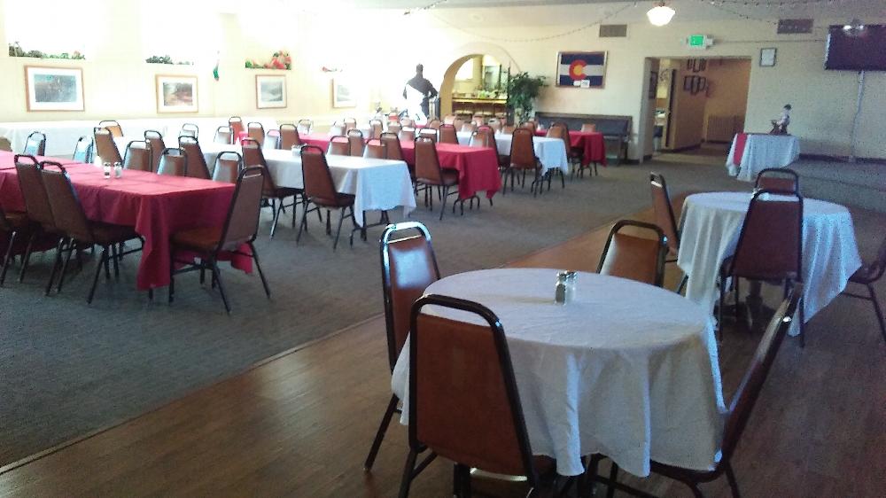 Large ballroom that will accommodate up to 275 people. Amenities include a semi professional kitchen, dance floor, stage, full service bar and separate entrance and restrooms. For more information on renting this facility call the Club Manager at (970) 247 2296. See more pictures of the Hall in the Photo Gallery Link to the left.